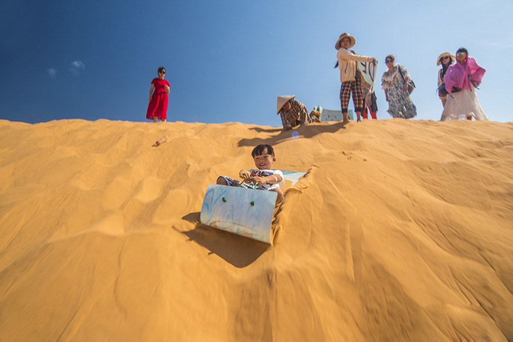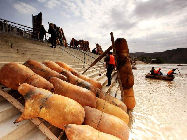 沙坡头除了传统的骑骆驼,沙坡头还有沙漠越野车、沙海冲浪等新鲜的玩乐项目等着你。你可以坐黄河飞索在黄河上空划出一道轻盈的弧线,或者从百米高的沙坝上滑下来,聆听响沙发出奇特的“嗡——嗡——”声,还能体验一番在《爸爸去哪儿》里露过脸的羊皮筏子:游人坐在“排子”上,筏工用桨划筏前进,让人直呼过瘾。